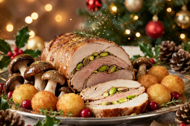 Eendballotine met pistache, bospaddestoelen, aardappelkroketjes € 26,20